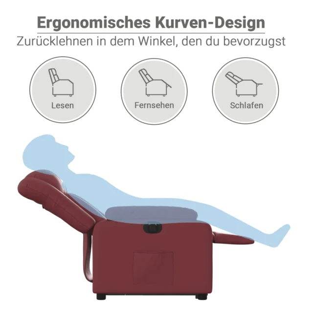 vidaXL Električni naslanjač s funkcijo vstajanja vin. rdeče um. usnje