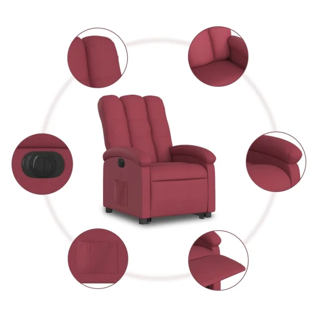 vidaXL Električni naslanjač s funkcijo vstajanja vinsko rdeč