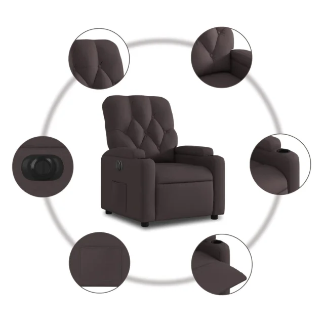 vidaXL Električni naslanjač temno rjavo blago