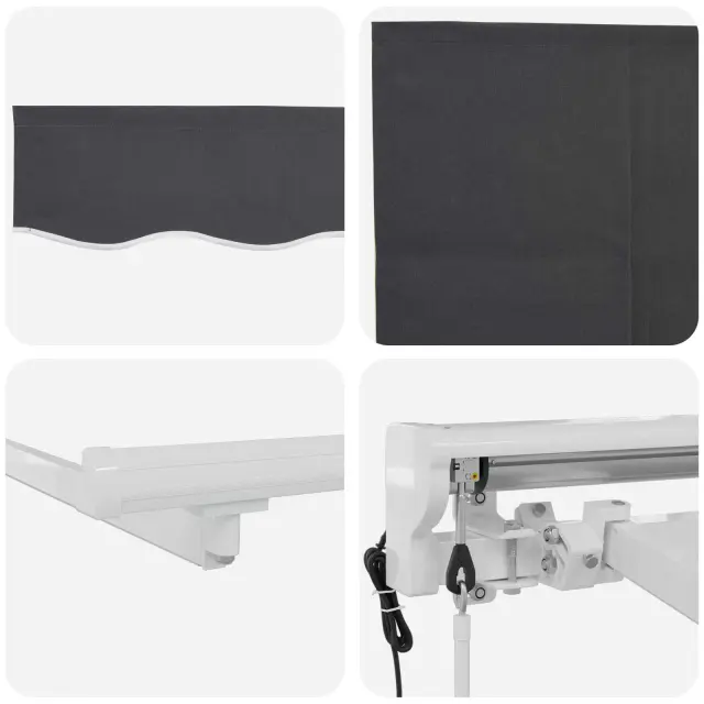 Ta moderna električna zložljiva tenda bo vašemu zunanjemu prostoru dodala pravi čar, saj nudi prilagodljivo senco. Njen eleganten, pravokoten dizajn se odlično poda moderne vrtnarske postavitve, kjer se spoji stil in funkcionalnost, primerna za vsak vrt ali teraso. Mislite na mirno okolje, kjer lahko uživate, zaščiteni pred močno sončno svetlobo. Tenda se lepo prilega steni in ponuja privlačen senčni prostor, ne da bi zavzela preveč prostora na tleh.