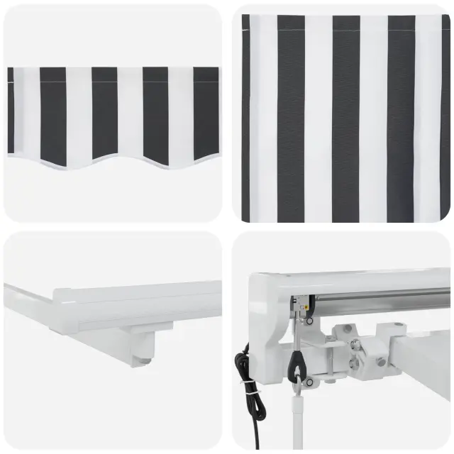 Ta električna zložljiva tende nudi stilsko in funkcionalno zaščito za vaše zunanje prostore. Z več kot dovolj funkcionalnosti in modernim minimalizmom se lepo prilega vsakemu vrtu ali terasi. Njena pravokotna oblika omogoča izboljšanje videza in funkcionalnosti vaših zunanjih prostorov, idealna je za druženja in sprostitvene trenutke.