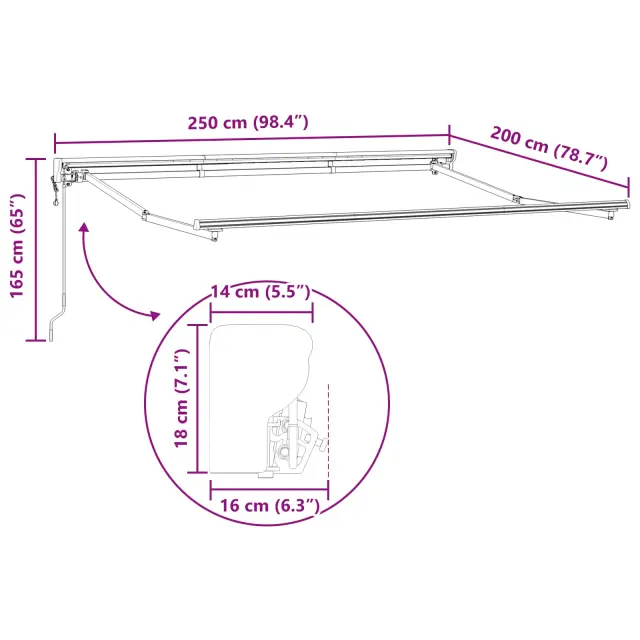 Ta retraktabilna tenda ponuja enostavno senco za zunanje prostore, kot so vrtovi in terase. Hitro jo razširite ali skrajšate, da prilagodite količino svetlobe in zaščite, ki jo potrebujete. Idealna je za zunanjo obedovanje, sproščanje ali zabave ter prispeva k udobnemu okolju s senco pred soncem in lahkim dežjem. Tenda je odličen dodatek za izkoriščanje zunanjih površin skozi vse leto.