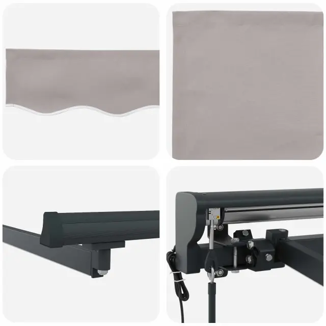 Ta moderna električna zložljiva tenda bo vašemu zunanjemu prostoru dodala pravi čar, saj nudi prilagodljivo senco. Njen eleganten, pravokoten dizajn se odlično poda moderne vrtnarske postavitve, kjer se spoji stil in funkcionalnost, primerna za vsak vrt ali teraso. Mislite na mirno okolje, kjer lahko uživate, zaščiteni pred močno sončno svetlobo. Tenda se lepo prilega steni in ponuja privlačen senčni prostor, ne da bi zavzela preveč prostora na tleh.