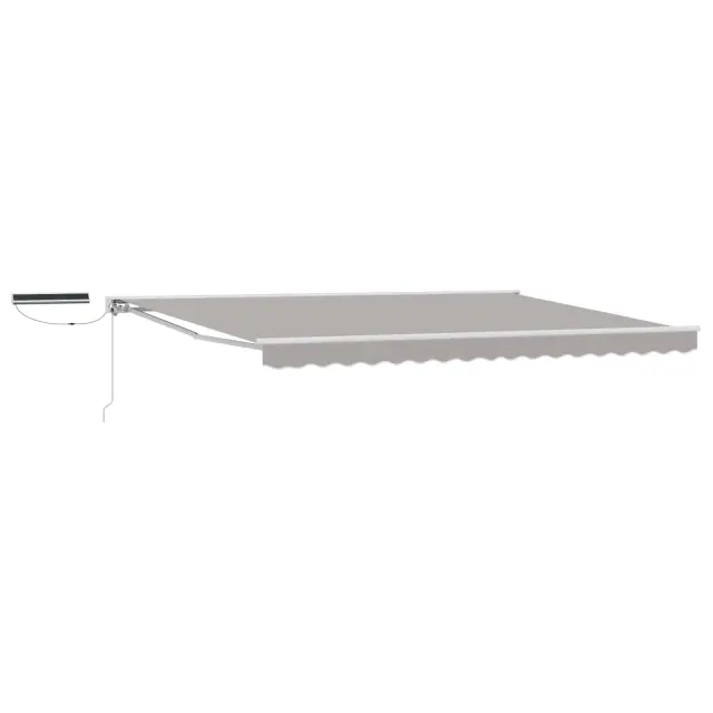 • Trajni materiali: Tenda je izdelana iz aluminija in poliestra, kar zagotavlja odpornost in privlačnost na prostem. Aluminij poskrbi za stabilnost in vremensko odpornost, poliester pa za vrhunsko UV zaščito. Ta kombinacija zagotavlja, da bo tenda delovala skozi vse letne čase.