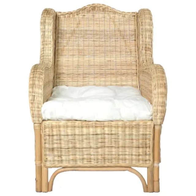 Ta stol je izdelan iz naravnega ratana, zato je vzdržljiv in preprost za čiščenje. Priložena blazina zagotavlja najvišje udobje ter je v pomoč pri sprostitvi po napornem dnevu. Popoln je za družinske filmske večere, igranje video iger, branje ali gledanje televizije.