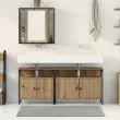 Ta stilski umivalnik je pravi simbol modernega oblikovanja. Z elegantnimi linijami in minimalistično estetiko je super za vsako sodobno kopalnico. Združuje obliko in funkcijo ter vključuje vgrajeno ogledalo, trdno leseno konstrukcijo in obsežno shranjevanje, kar spreminja vsako izkušnjo v kopalnici.