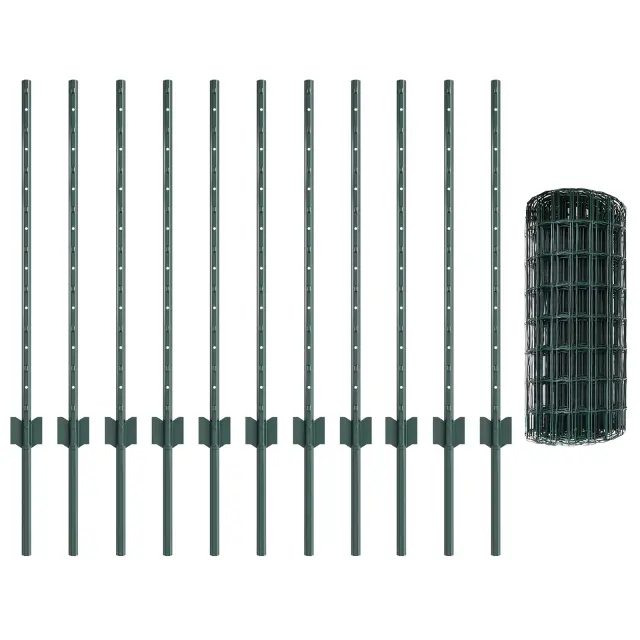 vidaXL Euro ograja z 11 U stebrički Zelena 0,8x25 m Jeklo