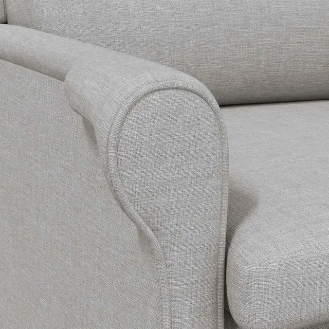 • Vključeni elementi: Fotelj ima ukrivljene rokonaslone, ki nudijo ergonomsko oporo in prijeten položaj rok. Polnjenje iz pene nudi mehko oblazinjenje, kar povečuje udobje pri daljši uporabi. Nogice iz trdnega kavčukovega lesa zagotavljajo stabilnost na različnih talnih površinah.