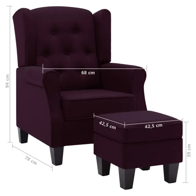 vidaXL Fotelj s stolčkom za noge vijolično blago