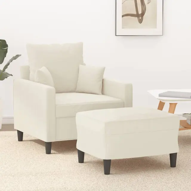vidaXL Fotelj s stolčkom za noge krem 60 cm žamet