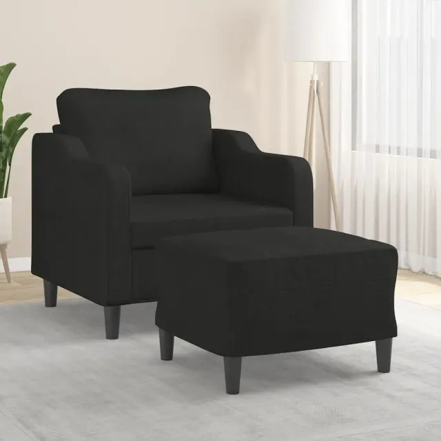 vidaXL Fotelj s stolčkom za noge črn 60 cm blago