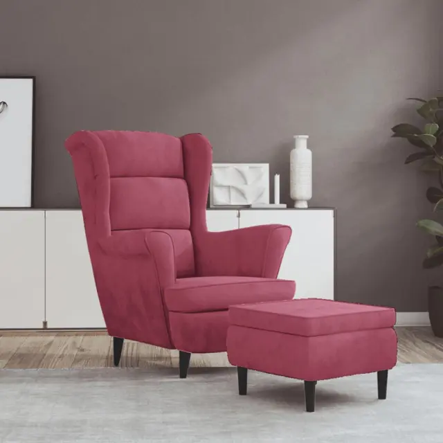 vidaXL Fotelj s stolčkom vinsko rdeč žamet