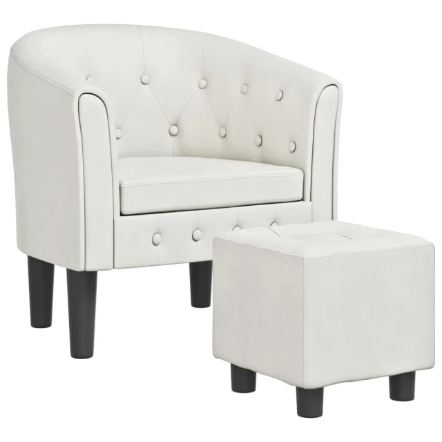 vidaXL Fotelj s stolčkom za noge belo umetno usnje