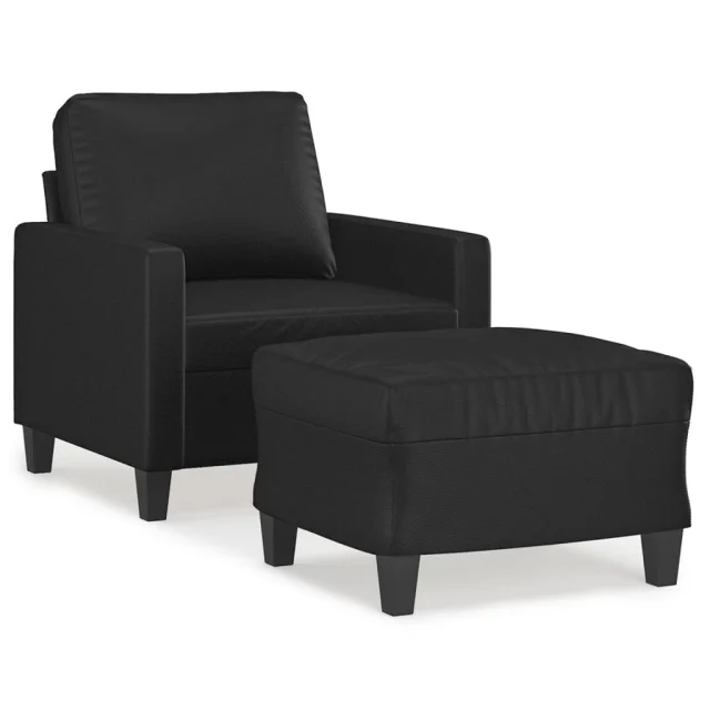 vidaXL Fotelj s stolčkom za noge črn 60 cm umetno usnje