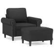 vidaXL Fotelj s stolčkom za noge črn 60 cm umetno usnje