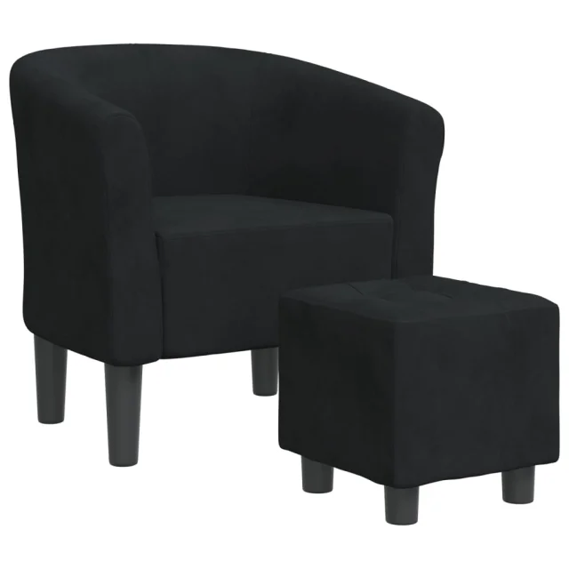 vidaXL Fotelj s stolčkom za noge črn žamet