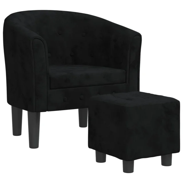 vidaXL Fotelj s stolčkom za noge črn žamet