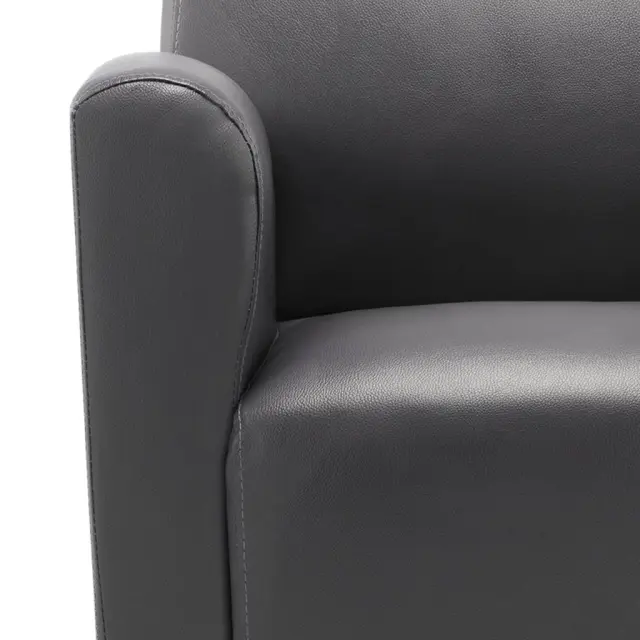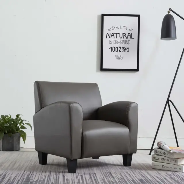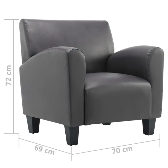 Ta stol za sproščanje je v enaki meri stilski in razkošen, ponaša se z umetnim usnjem, ki zagotavlja brezčasen stil z modernim pridihom, zato bo to resnično privlačen dodatek za okrasitev vaše spalnice in dnevne sobe. Ta stol je odličen dodatek za vaš dom in za poživitev vašega vsakodnevnega življenja. Ima močan okvir, oblečen pa je v mehko in udobno umetno usnje. Zahvaljujoč visokokakovostnemu okvirju in oblogi iz umetnega usnja je ta fotelj stabilen in trpežen ter primeren za dolgoletno uporabo. Ima koncizno, a še vedno klasično obliko, zato se bo ta stol za sproščanje podal v vsako dnevno sobo s stilskim modernim videzom. Sedež je zelo udoben za sedenje, saj se ponaša z ergonomsko obliko. Priložene sedežne blazine zagotavljajo dodatno udobje. Ta stol je popolna izbira za pogovarjanje, branje, gledanje TV ali pa samo za sproščanje. Barva: SivaMaterial: Umetno usnjeCelotne dimenzije: 70 x 69 x 72 cm (Š x G x V)Širina sedeža: 45 cmGlobina sedeža: 44 cmVišina naslonjala za hrbet: 42 cmVišina sedeža, merjena od tal: 42 cmVišina naslonjal za roke, merjena od tal: 55 cmMaksimalna nosilnost: 110 kgTkanina: Bombaž: 13%, Poliester: 20%, Poliuretan: 7%, PVC: 60% 248619