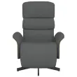 Ali iščete stol za popoln počitek po napornem dnevu? Ta udoben naslanjač je popolna izbira! Ročna funkcija nagiba: Ta naslanjač je posebej zasnovan s funkcijo nagiba, tako da lahko naslonjalo za hrbet in naslonjalo za noge prilagodite svojemu udobju. Naslonjalo je mogoče nagniti od 105 do 125 stopinj.360-stopinjsko vrtenje: Fotelj se lahko prosto vrti za 360 stopinj, kar mu daje dodatno prilagodljivost.Udobno sedenje: Sedež, naslonjalo za hrbet, naslon za noge in nasloni za roke, prevlečeni s tkanino, zagotavljajo prijeten in topel občutek, zato se med sedenjem počutite prijetno. Preprosta in čista tkanina je tudi zračna in trpežna.Trden in stabilen okvir: Okvir iz vezanega lesa in kovine zagotavlja trdno strukturo in stabilnost. Ta naslanjač je udoben in trpežen.Barva: Temno sivaMaterial: Blago (100 % poliester), vezan les, kovinaMaterial polnila: PenaDimenzije v sedečem položaju: 79,5 x 83 x 104 cm (Š x G x V)Dimenzije v ležečem položaju: 79,5 x 129,5 x 95,5 cm (Š x G x V)Širina sedeža: 51 cmGlobina sedeža: 63 cmVišina naslonjal za roke, merjena od tal: 53,5 cmMaksimalna nosilnost: 110 kgPotrebno sestavljanje: Da 356602
