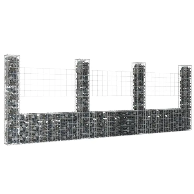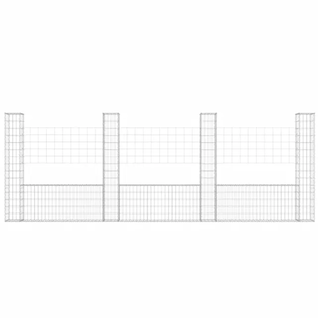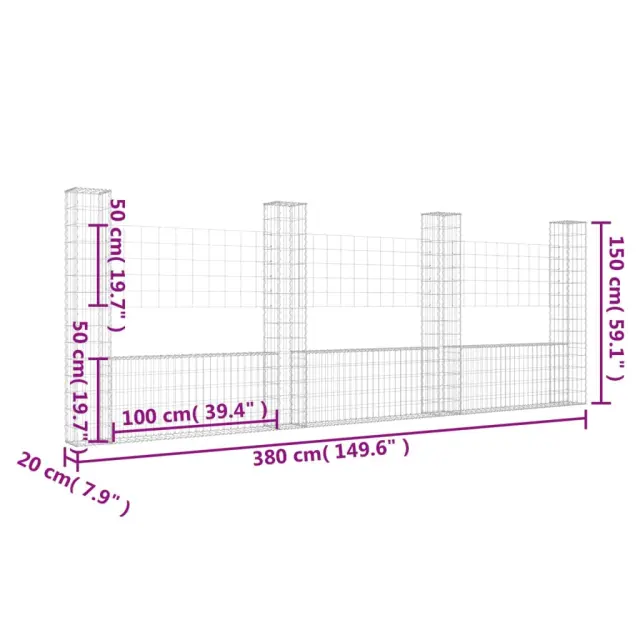 vidaXL Gabion košara U-oblike s 4 stebri železo 380x20x150 cm