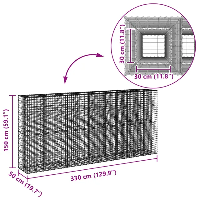 Ta gabionska dvignjena postelja je narejena iz pocinkanega jekla, kar ji daje trdno in odporna osnovo za vrtnarjenje na prostem. Njena zmogljiva mreža podpira težke materiale, kot so kamenje in prod, hkrati pa omogoča odvodnjavanje. Sestavljanje je enostavno in zahteva le osnovna orodja, zato je odlična izbira za gojenje zelenjave, zelišč ali cvetlic, ne glede na vrtnarske razmere.