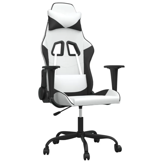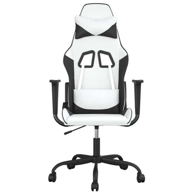 vidaXL Gaming stol Bela in črna umetno usnje