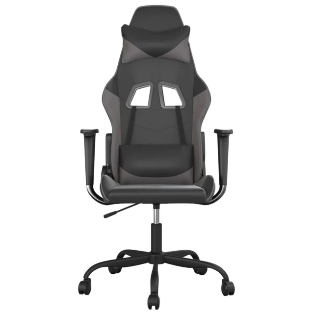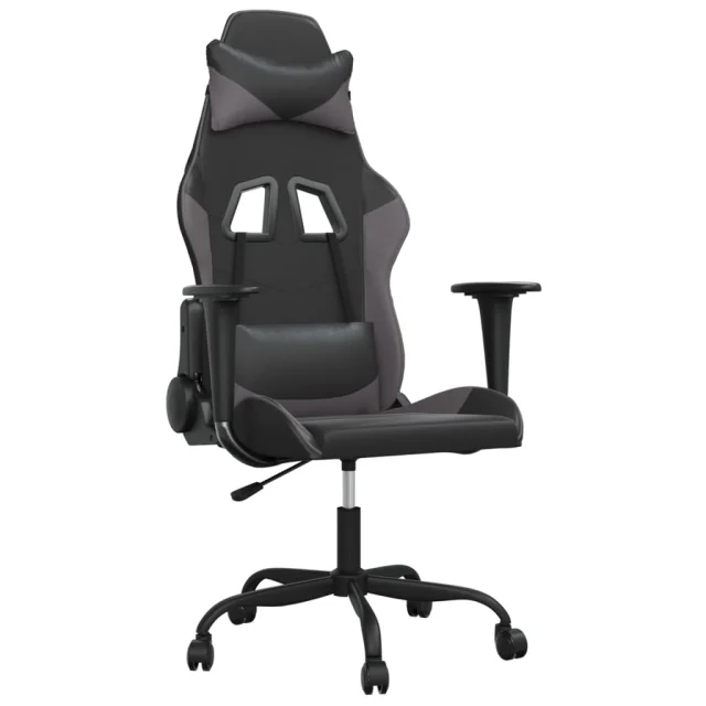 vidaXL Gaming stol črno in siva umetno usnje
