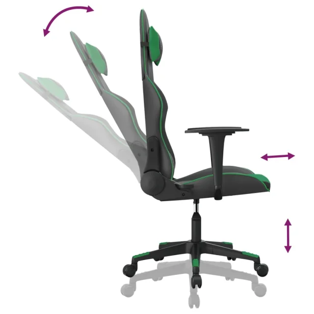 vidaXL Gaming stol črno in zeleno umetno usnje
