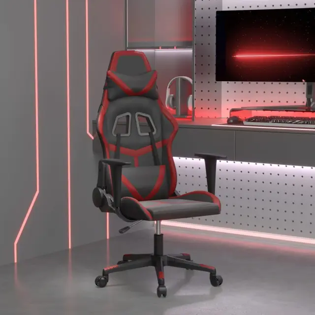 vidaXL Gaming stol črno in vinsko rdeče umetno usnje