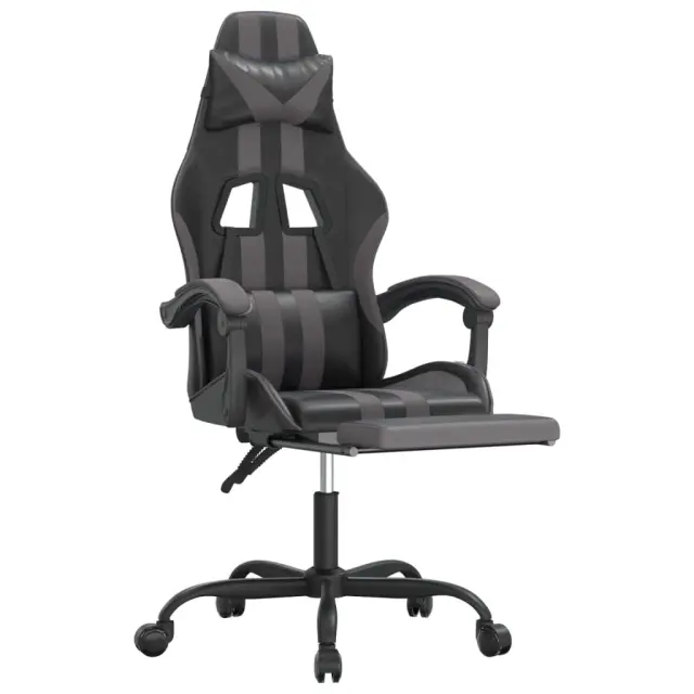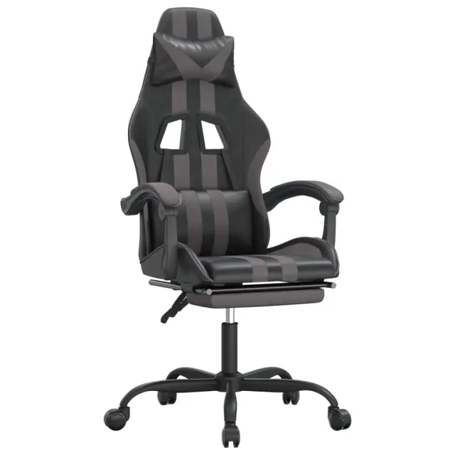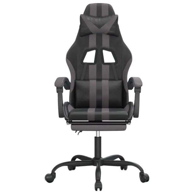 vidaXL Gaming stol z oporo za noge črno in sivo umetno usnje