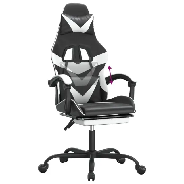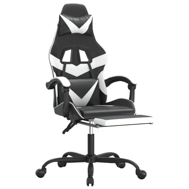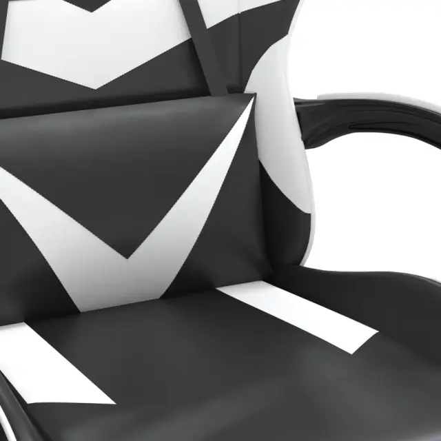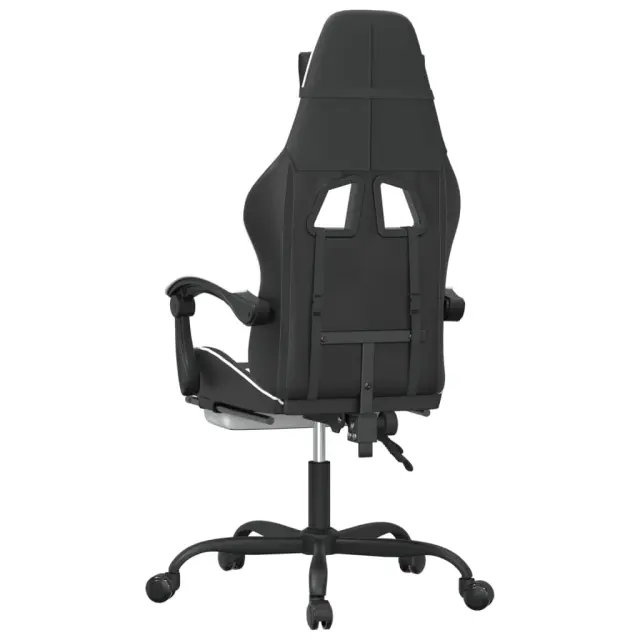 vidaXL Gaming stol z oporo za noge črno in belo umetno usnje