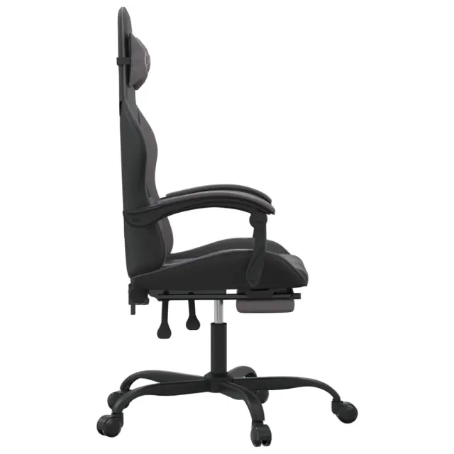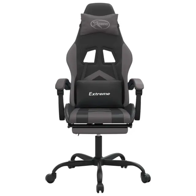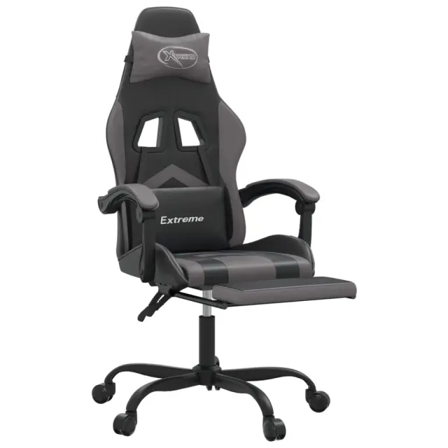 Uživajte pri sedenju na tem edinstvenem gaming stolu ter si med igranjem zagotovite udobje! Trpežno umetno usnje: Vrhunsko umetno usnje je zelo vzdržljiv material. Je odporno na madeže, zato ga lahko preprosto čistite z vlažno krpo. Gladka površina mu prav tako daje razkošen videz in lepoto pravega usnja.Nastavljivo naslonjalo za hrbet in višina: Stol je posebej zasnovan s funkcijo nagiba, tako da lahko naslonjalo za hrbet in oporo za noge prilagodite glede na svoje potrebe. Z ročico lahko nastavite višino sedeža po svojih željah.Priročna zasnova: 360-stopenjska vrtljiva zasnova omogoča širši razpon gibanja. Poleg tega je premikanje priročno s pomočjo vrtljivih koles.Močan in stabilen okvir: Okvirja iz kovine in vezanega lesa zagotavljata trdnost in stabilnost. Opomba:Vsakemu izdelku je priložen priročnik za enostavno sestavljanje.Barva: Črna in sivaMaterial: Umetno usnje (75 % polivinilklorid, 5 % bombaž, 20 % poliester), kovina, vezan lesMaterial polnila: PenaSkupne dimenzije: 57,5 x 59,5 x (121-131) cm (Š x G x V)Dimenzije v ležečem položaju: 57,5 x 129,5 x (108,5-118,5) cm (Š x G x V)Velikost sedeža: 36,5 x 42 cm (Š x G)Višina sedeža od tal: 44,5-54,5 cmVišina naslonjala za roke: 24,5 cm 3143906