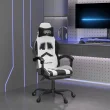 vidaXL Gaming stol z oporo za noge belo in črno umetno usnje