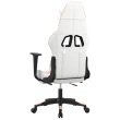 vidaXL Gaming stol z oporo za noge belo in roza umetno usnje
