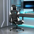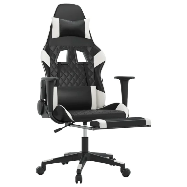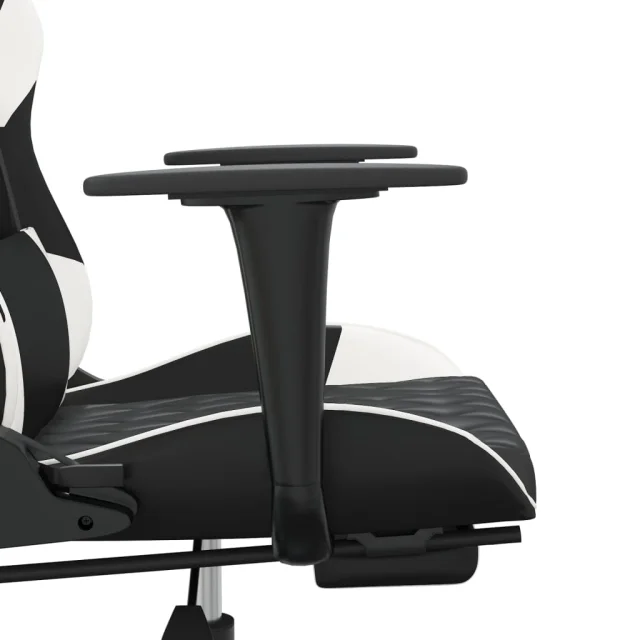 vidaXL Gaming stol z oporo za noge črno in belo umetno usnje