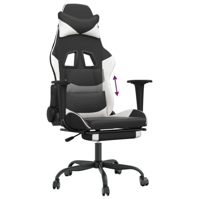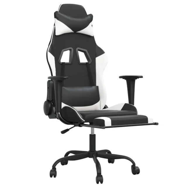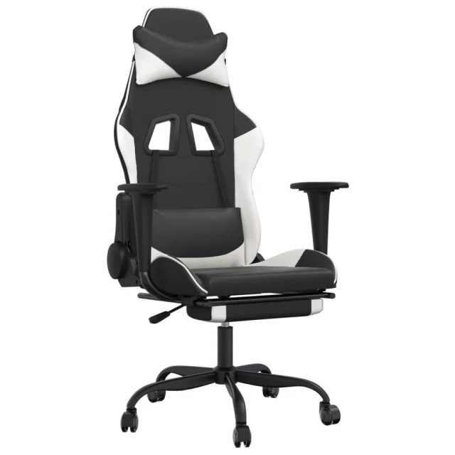 vidaXL Gaming stol z oporo za noge črno in belo umetno usnje