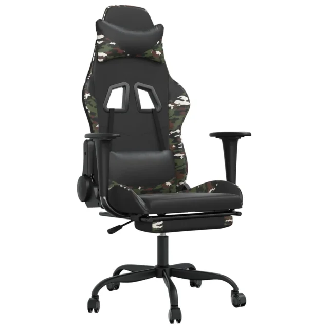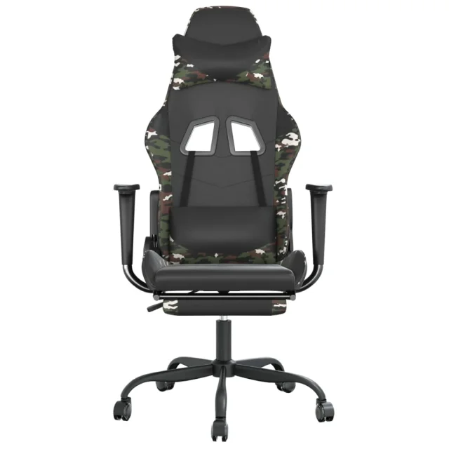 vidaXL Gaming stol z oporo za noge črno in kamuflažno umetno usnje