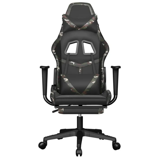 vidaXL Gaming stol z oporo za noge črno in kamuflažno umetno usnje
