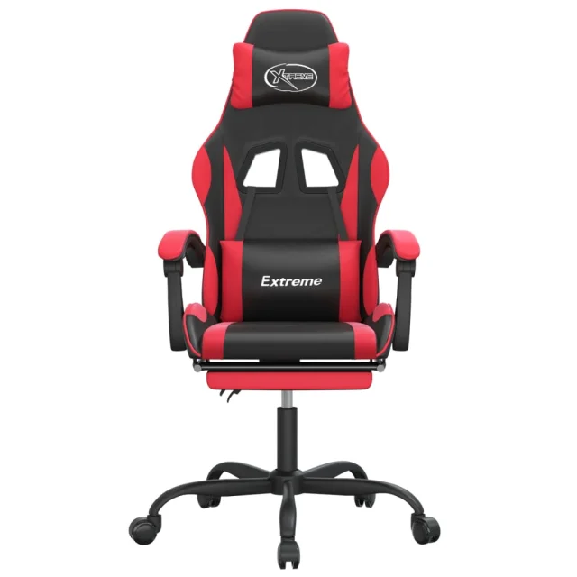 vidaXL Gaming stol z oporo za noge črno in rdeče umetno usnje