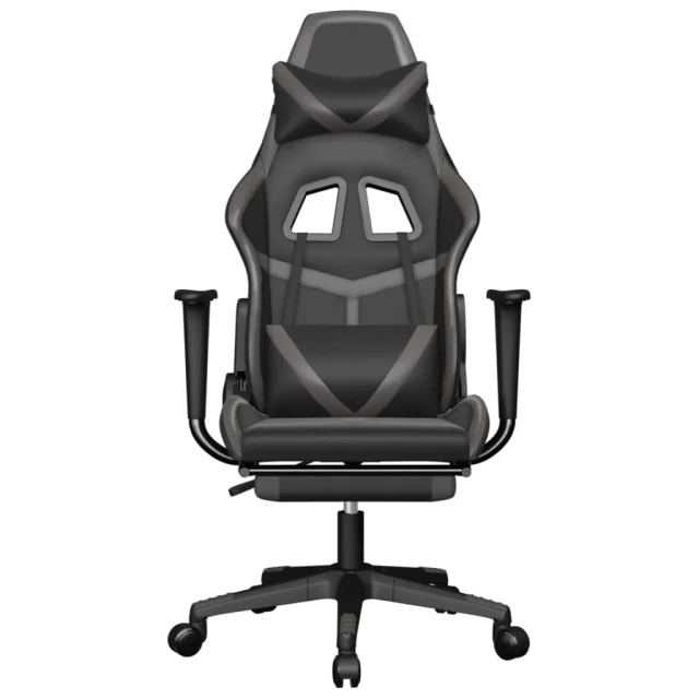vidaXL Gaming stol z oporo za noge črno in sivo umetno usnje