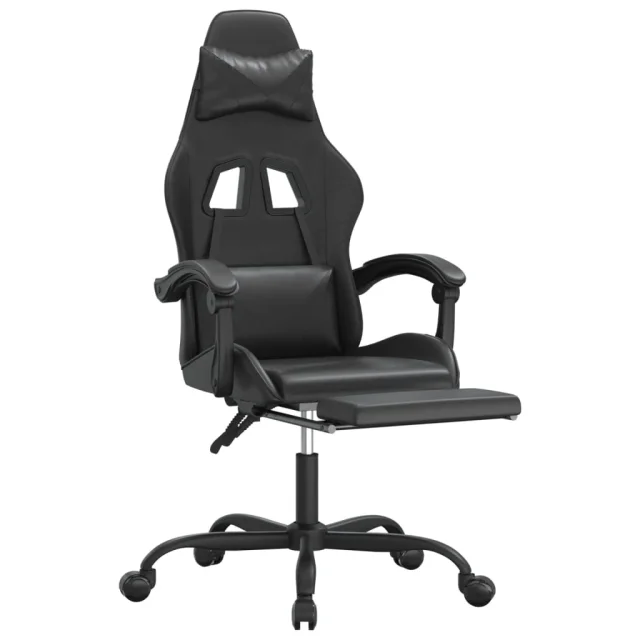 vidaXL Gaming stol z oporo za noge črno umetno usnje