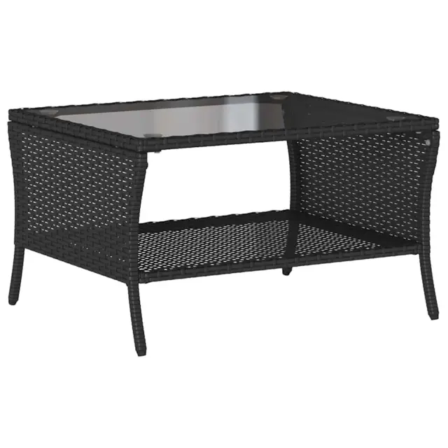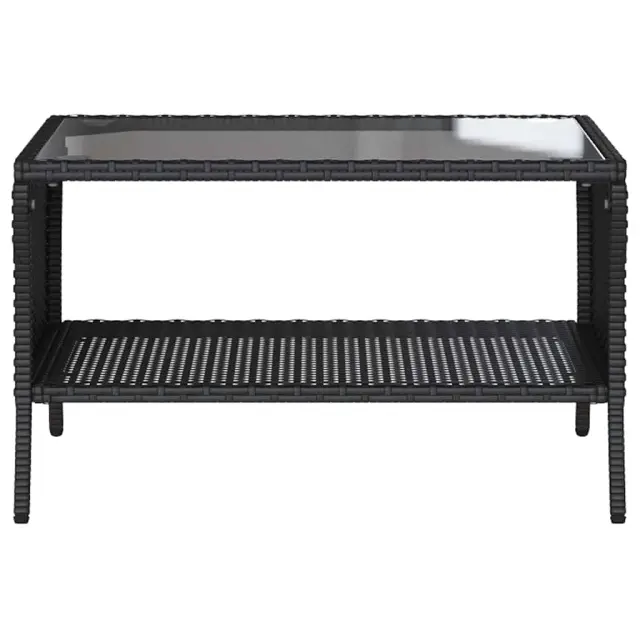 vidaXL Garden Sofa 2-sedežnik z blazinami&Table Black Poly Rattan