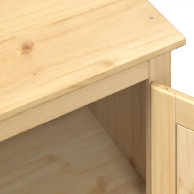 • Trdna borovina: Trdna borovina je čudovit naravni material. Borovina ima ravne vzorce, grče pa dajejo materialu njegov značilen, rustikalen videz. Omara za shranjevanje je izdelana iz trdnega borovega lesa, zato je trpežna in stabilna.