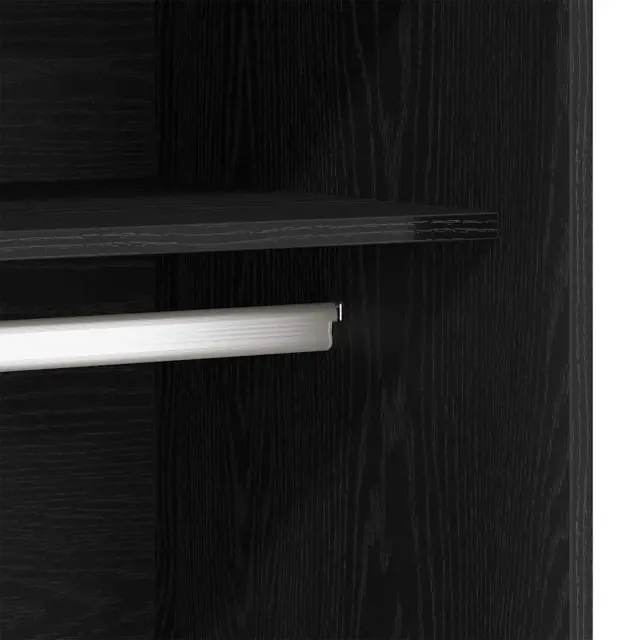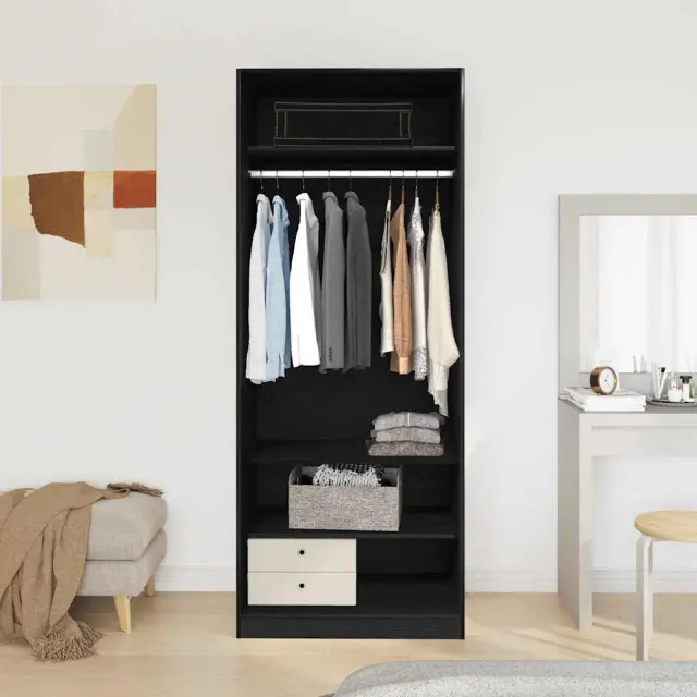 Ta moderen črn kabinet za shranjevanje iz inženirskega lesa združuje stil in uporabnost, zaradi česar je super izbira za spalnice in omare. Dodaja čudovit pridih tvojemu dekorju. S svojo gladko mat površino in čistimi linijami se super ujema kjerkoli, nudi ti eleganten način za organizacijo prostora.