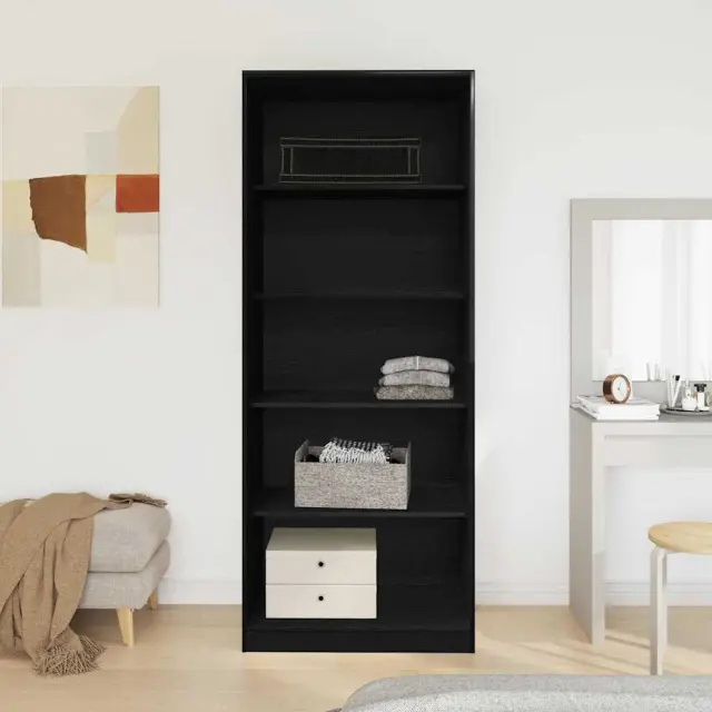 Ta moderen črn kabinet za shranjevanje iz inženirskega lesa združuje stil in uporabnost, zaradi česar je super izbira za spalnice in omare. Dodaja čudovit pridih tvojemu dekorju. S svojo gladko mat površino in čistimi linijami se super ujema kjerkoli, nudi ti eleganten način za organizacijo prostora.