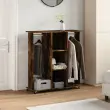 Očistite svojo omaro in preprosto izberite svojo obleko s to garderobo! Material z dolgo življenjsko dobo: Inženirski les se ponaša z izjemno kakovostjo, gladko površino ter močjo, stabilnostjo in odpornostjo na vlago.Veliko prostora za shranjevanje: V tej omari za shranjevanje je dovolj prostora za shranjevanje oblačil, klobukov, rokavic ali drugih zloženih oblačil ali dodatkov. Poleg tega je ta organizator oblačil opremljen z dvema palicama za obešanje, zato ga lahko uporabite za obešanje plaščev, oblek itd.Enostavno vzdrževanje: Zaradi gladke površine je organizator garderobe enostavno očistiti z vlažno krpo, saj ne potrebuje veliko vzdrževanja.Enostavno premikanje in varno parkiranje: Omara je opremljena s 360° vrtljivimi kolesi, ki omogočajo enostavno premikanje. Poleg tega lahko dve kolesi zaklenete za dodaten nadzor in varnost.Brezčasen dizajn: Ta omara ima čiste, preproste linije in minimalističen videz, ki vašemu trenutnemu notranjemu dekorju doda brezčasen sodoben slog. Opozorilo:Za preprečitev prevračanja je treba ta izdelek uporabiti s priloženo napravo za pritrditev na steno.Barva: Dimljeni hrastMaterial: Inženirski lesDimenzije: 102 x 38 x 110 cm (Š x G x V)Potrebno sestavljanje: Da 848035
