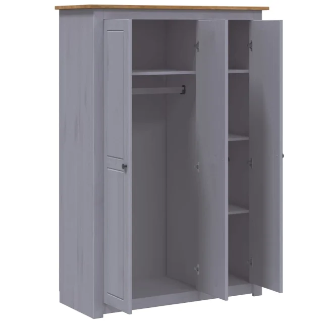 vidaXL Garderobna omara s 3 vrati siva 118x50x171,5 cm borovina Panama