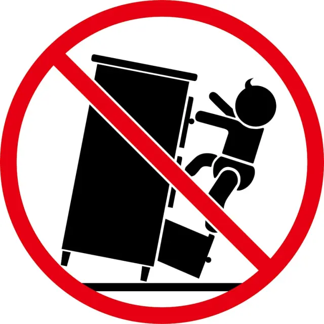 • Za preprečitev prevračanja je treba ta izdelek uporabiti s priloženo napravo za pritrditev na steno.