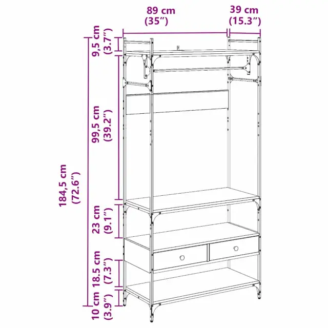 • Splošne dimenzije: 89 x 39 x 184,5 cm (Š x G x V)