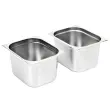 Namizne posode so izdelane iz močnega nerjavečega jekla, imajo trdno konstrukcijo in so preproste za čiščenje. Trpežen material zagotavlja zaščito pred praskami in preprosto vzdrževanje. Posoda za hrano se ponaša s standardnimi gastronomskimi dimenzijami in zato omogoča univerzalno uporabo v različnih kombinacijah. Prav zato se bo popolnoma podala v vse vaše profesionalne kuhinjske omarice in k drugi dodatni opremi, kot so vodne kopeli za gretje hrane, termo posode in solatni bari. Posode se lahko zložijo ena na drugo in tako prihranijo veliko prostora, zato so zelo praktične in idealne za uporabo v restavracijah, hotelih, na zabavah in doma.